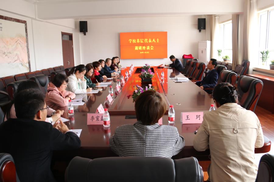 4月25日下午,党委书记黄金林在综合实训楼第三会议室主持召开校内民主党派代表人士、青年教师代表、教授代表及博士代表调研座谈会,听取他们对学校建设发展的意见建议,并就他们关心关注的问题进行座谈。