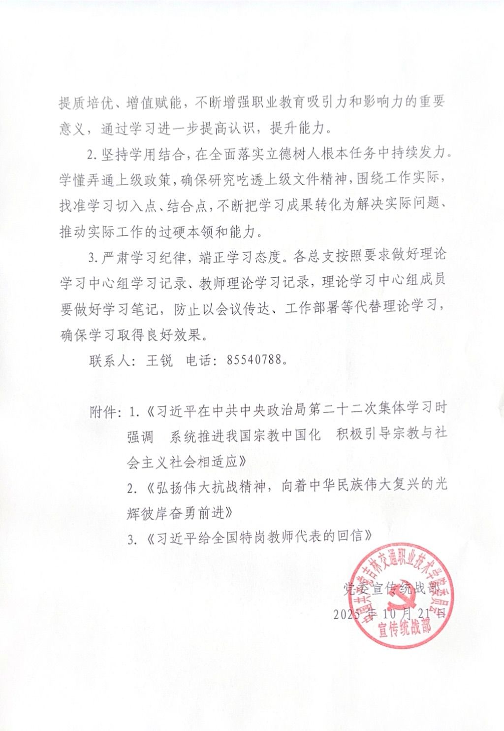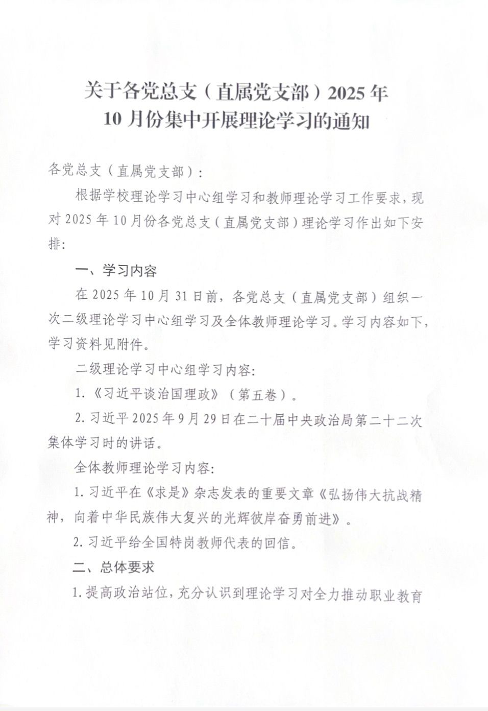 关于各党总支(直属党支部)2025年10月份集中开展理论学习的通知